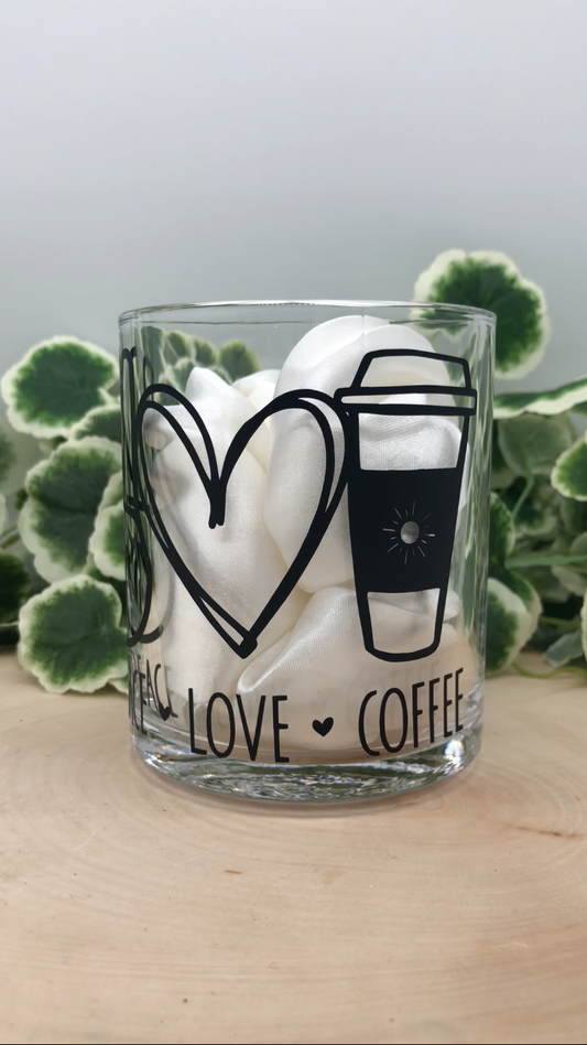 Peace, Love, Coffee Glass Mug
