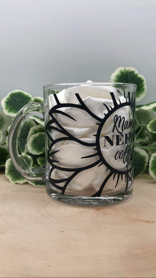 Mama Needs Coffee Sunflower Glass Mug