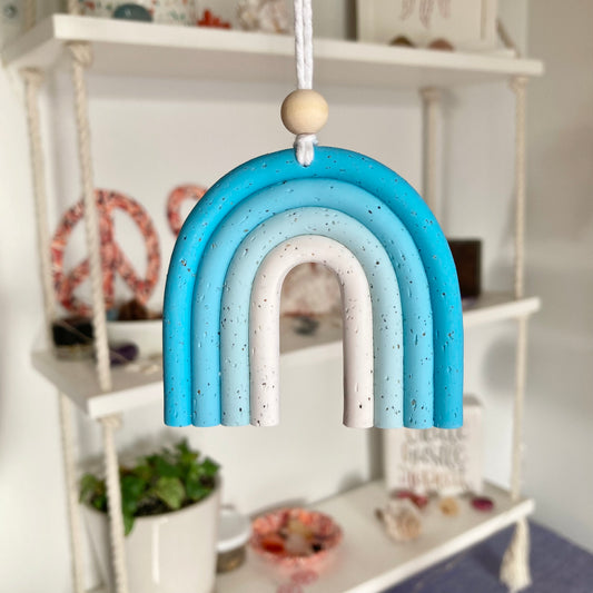 Blue Ombre Mini Macramé Rainbow Rear View Mirror/Wall Hanging