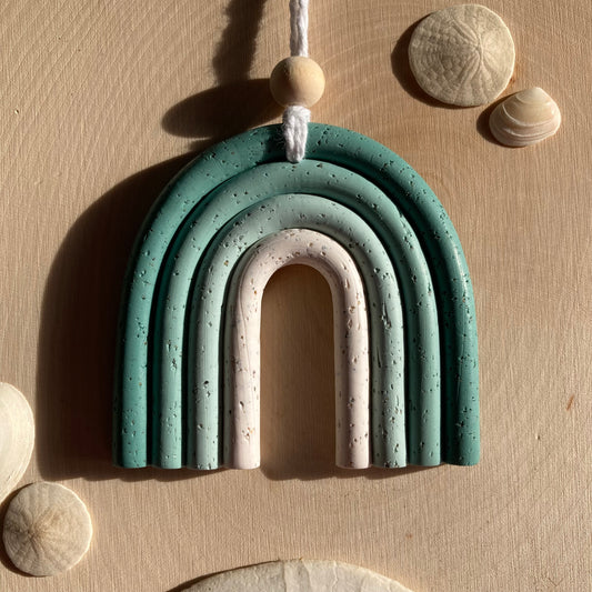 Green Ombre Mini Macramé Rainbow With Sand from Sunset Beach in Oregon Wall Hanging